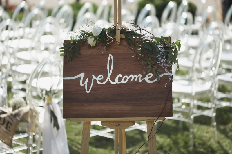 The presence of a lush floral welcome sign at the entrance of your ceremony or reception is another way to pay homage to the natural world. You can keep it straightforward by using greenery, or you can make it more elaborate by using flowers that match the colour scheme of your theme. In either case, the attendees won't be able to tear their gaze away from it.