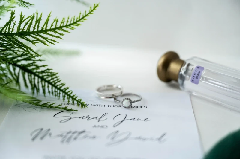 Metallic Finish: Want to give your perfect wedding day a little glam? Think about including metallic elements in your invitation design! For the ultimate opulent look, use holographic accents or vintage gold foiling or gold seal.